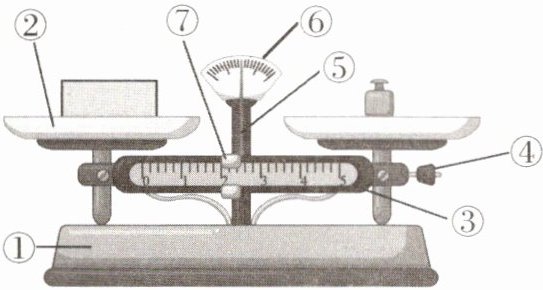 1. 如图所示,写出托盘天平各部分的名称。