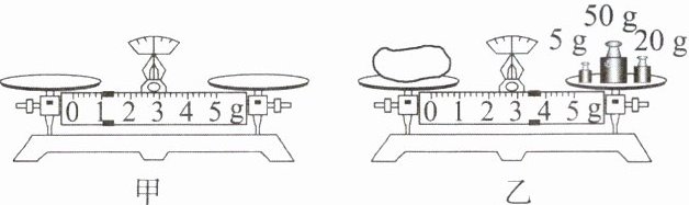 (3)调节横梁平衡后,小明将小石块放在左盘,在右盘中加减砝码并调节游码在标尺上的位置,直到横梁恢复平衡。这时右盘中的砝码情况和游码在标尺上的位置如图乙所示,则小石块的质量为____