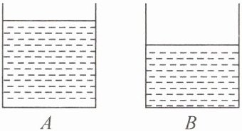 4. 如图所示,两个形状相同的烧杯,分别盛有质量相等的水和酒精。根据图中液面的高度和液体密度知识,可知A液体是