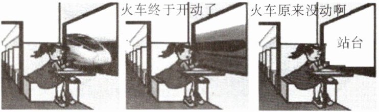 4. 如图所示,两列火车并排停在站台上,小红坐在车厢内向另一列火车观望。突然她觉得自己乘坐的列车开始前进了,但是“驶过”对面列车的车尾时,小红发现她乘坐的列车还停在站台上,原来是对面的列车向反方向开去了。“开始前进了”和“停在站台上”是因为小红所选的参照物分别是(