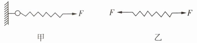 4. 如图甲所示,弹簧的一端挂在墙上,一人用4N的力F拉另一端,弹簧伸长了5cm;如图乙所示,两个人分别拉该弹簧的两端,弹簧也伸长了5cm,则每个人的拉力F分别为(