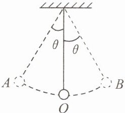 4. 如图所示,用细线将小钢球悬挂起来,让其在竖直平面内左右摆动。忽略空气阻力,在图上画出小钢球摆动到$B$点时所受力的示意图。