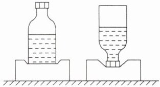 将左边瓶中水倒出一些,倒立在海绵上,比较两瓶的压力作用效果