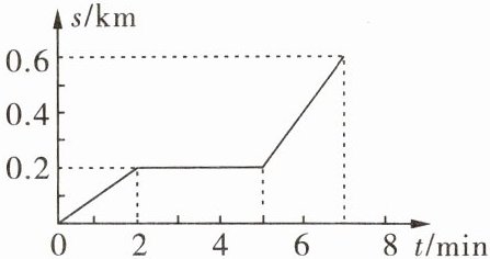 2. 小明某天上学时运动的路程与时间的关系图像如图所示,他在 4~6 min 内的平均速度是