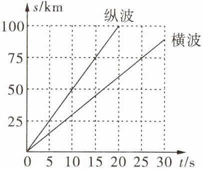 3. 利用地震波中纵波和横波的传播速度不同可以监测震源的位置。图示两条直线分别表示这两种波从震源开始传播的距离(s)与所用时间(t)的关系,若测得这两种波先后到达某监测站的时间间隔为 10 s,则震源到该监测站的距离为(