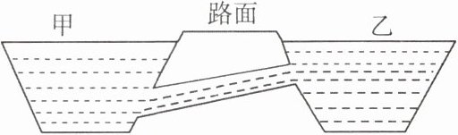 7. 公路两侧的甲、乙两条水渠由路面下的两条倾斜涵洞相连,两渠水面相平,如图所示。关于涵洞中水流方向,下列说法正确的是(