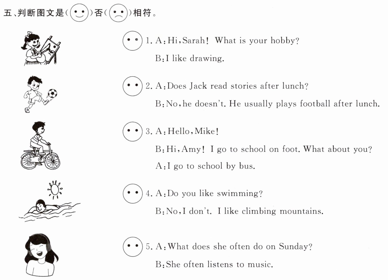 Chinese food every day?5. My hobby is listening to music.(对画线部分提问)