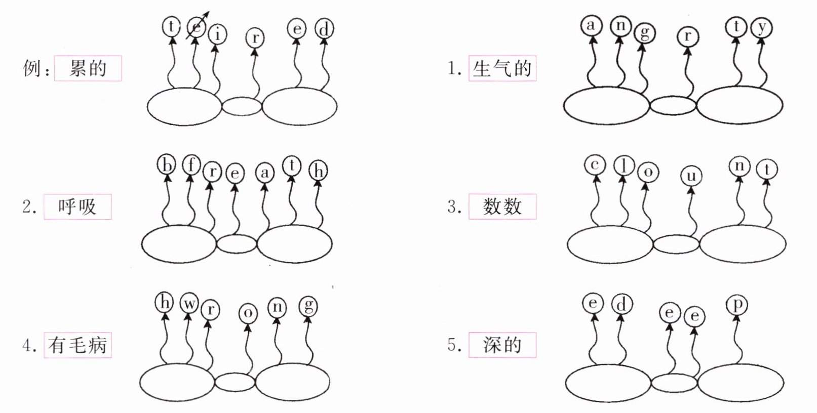 一、根据汉语提示,仿照例子完成下列各题。