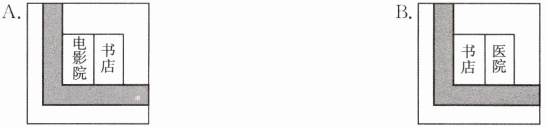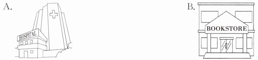 )3. The bookstore is next to the hospital.(