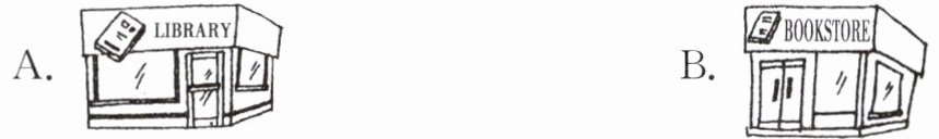 )1. A. The bookstore is near the school. B. The bookstore is behind the museum.