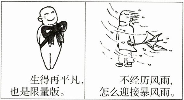 A 解析:“生得再平凡也是限量版”说明每个人都是独特的,不可替代,需要接纳和欣赏自己,①②正确;③说法绝对,错误;④与两幅漫画无关,排除。故选A。