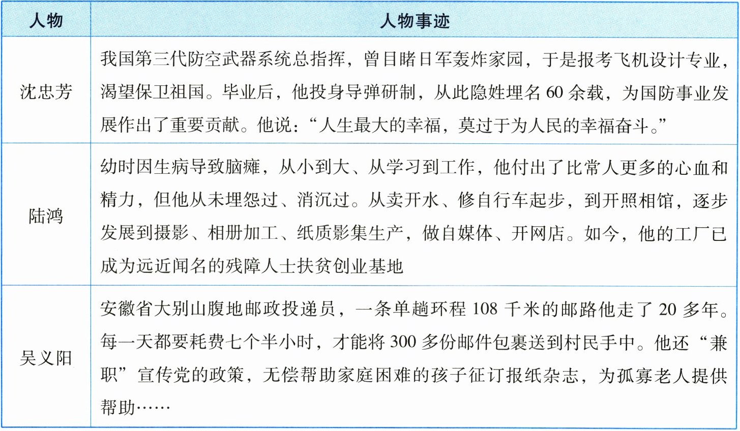 |沈忠芳|我国第三代防空武器系统总指挥,曾目睹日军轰炸家园,于是报考飞机设计专业,渴望保卫祖国。毕业后,他投身导弹研制,从此隐姓埋名 60 余载,为国防事业发展作出了重要贡献。他说:“人生最大的幸福,莫过于为人民的幸福奋斗。”|