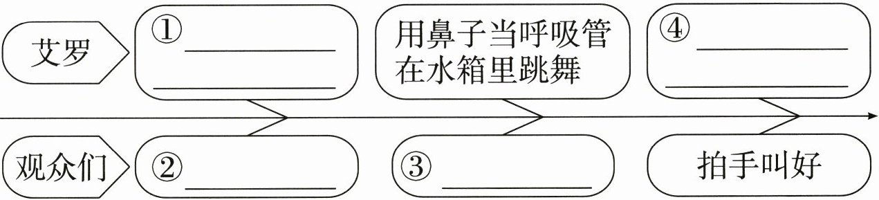2. 艾罗表演了哪些节目?观众们的反应是怎样的?将下图补充完整。