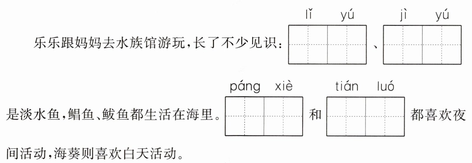 2. 仿照例字,在田字格里书写汉字,注意做到规范、美观。