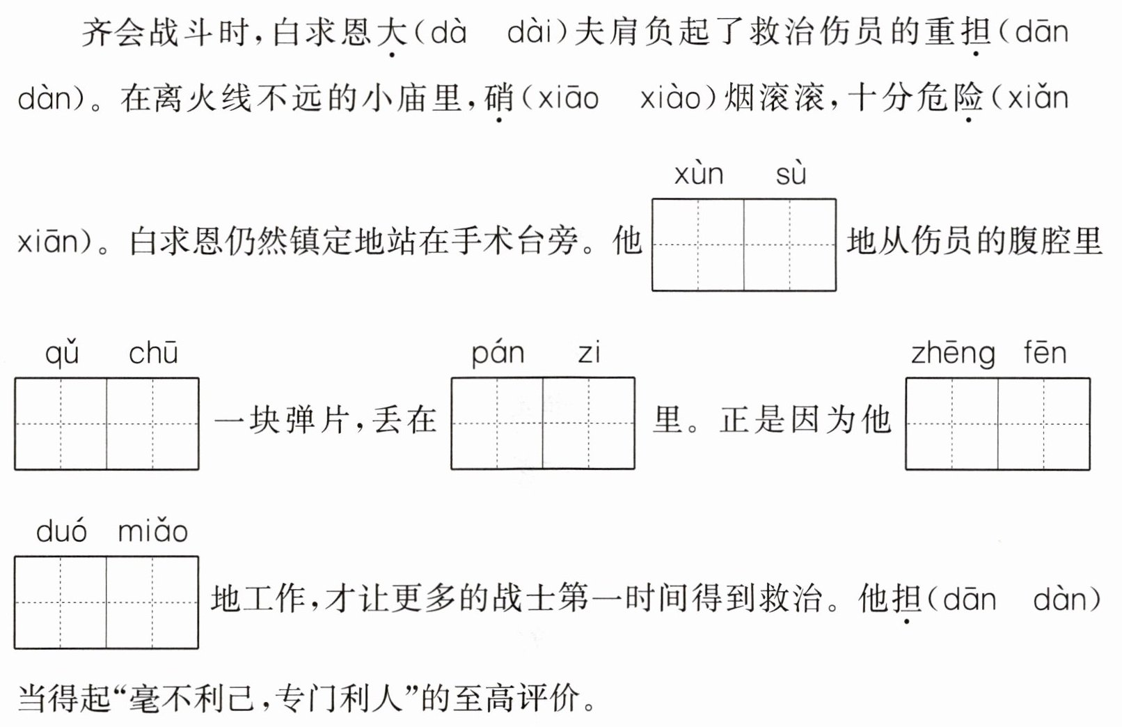 1. dài dàn xiāo xiǎn dān 2. 迅速 取出 盘子 争分夺秒