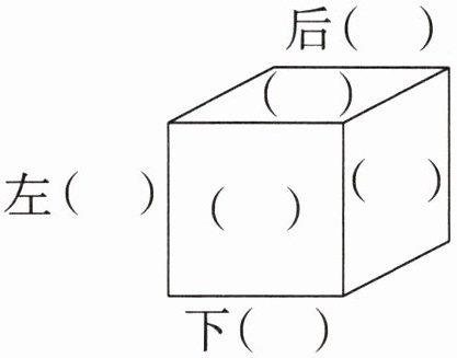 六、正方体相对两个面上的数的和是7。根据三人的描述,想一想,并在图形中的( )里填一填。