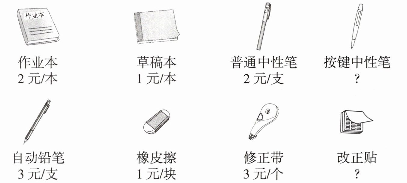 1. 1支按键中性笔的价格是1支普通中性笔的3倍,买1支按键中性笔和1支普通中性笔,共需要多少钱?