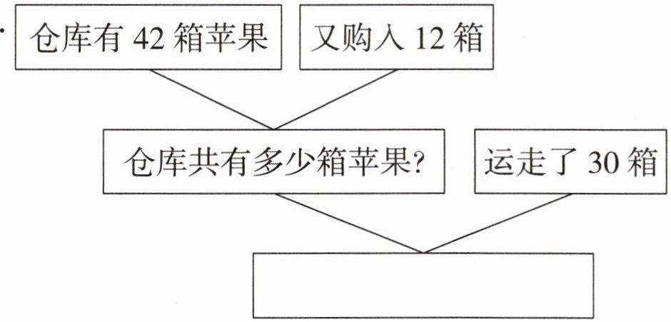 (2)班有多少人?4×9=36(人)36+36=72(人)2. 答案不唯一。示例:仓库还剩多少箱苹果?42+12-30=24(箱)