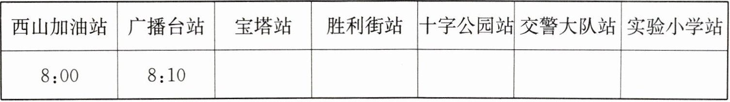 |西山加油站|广播台站|宝塔站|胜利街站|十字公园站|交警大队站|实验小学站|