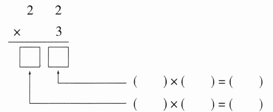 $\begin{array}{r}2\quad2 \\×\quad\quad3 \\\hline□\quad□ \\\end{array}\\\hline□\quad□ \\ $