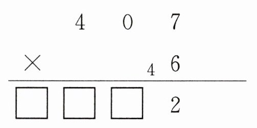 $\begin{array}{r}4\quad0\quad7 \\×\quad\quad\quad6 \\\hline□□□\quad2 \\\end{array}\\ $