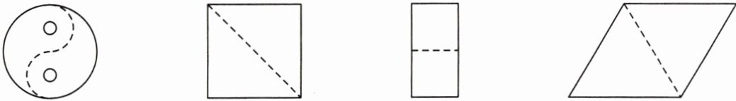 由于第一个图形(圆形被分成阴阳两部分)整体并非均分为两份,无法直接涂$\frac{1}{2}$来表示均分后的部分;第四个图形(平行四边形)仅画了一条对角线,未明确均分方式,若按此对角线涂色,严格意义上来说也不能表示标准的$\frac{1}{2}$(未说明是面积的$\frac{1}{2}$等),所以只有第二和第三个图形可规范作答: