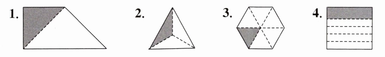 第三个图形:将长方形沿虚线分割后的其中一份涂色。