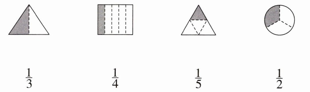 1. 下面各图中涂色部分表示$\frac{1}{3}$的图形是(