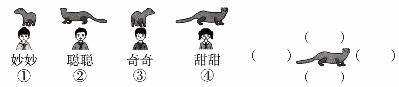 二、下面分别是妙妙、聪聪、奇奇、甜甜看到的图形,将他们观察的位置填入( )内。(填序号)