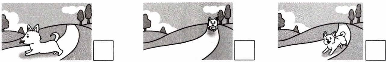 三、奇奇看到小狗在向他跑来,按时间顺序用序号①②③给下面的 3 幅图编号。
