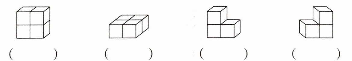 四、小升观察一个立体图形,从上面、左面看到的都是两个紧挨的小正方形,他观察的不会是哪个立体图形?在下面的( )里画“√”。