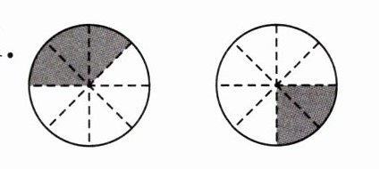 1.1 3 4 1 3 4 4 $\frac{1}{5}+\frac{3}{5}=\frac{4}{5}$ 2. 3 1 3 1 2 2 $\frac{3}{5}-\frac{1}{5}=\frac{2}{5}$