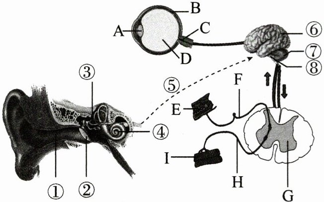 ,此反射的神经冲动的传导途径是E→F→G→H→I