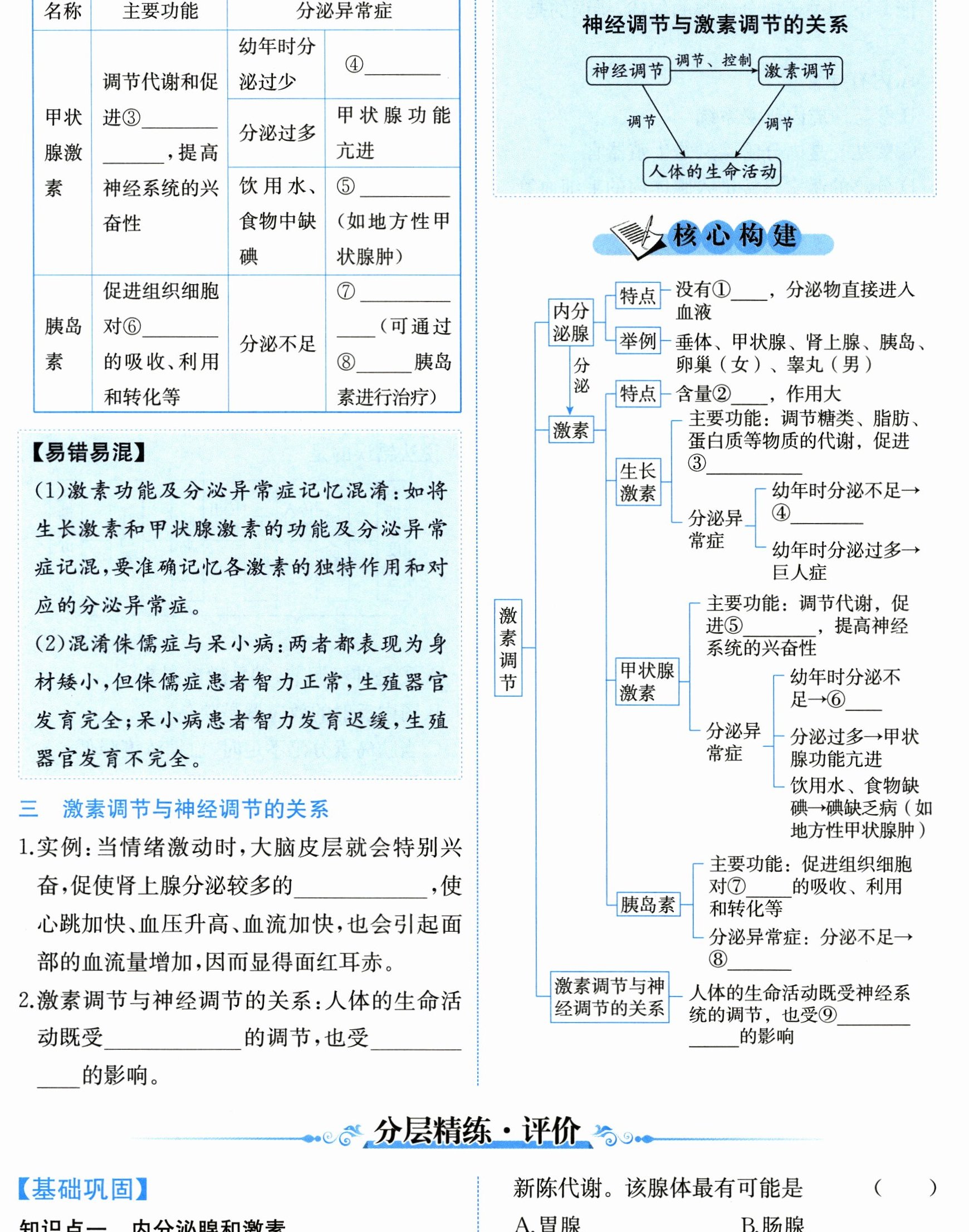 ,作用大,对生长发育和生殖等生命活动起着重要的调节作用。2. [对比归纳]几种激素的主要功能及分泌异常症