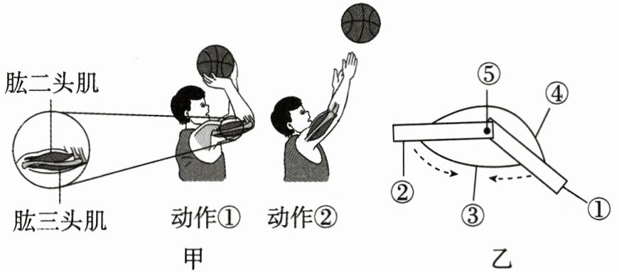 )A.甲图中动作①到动作②的过程,肱二头肌收缩、肱三头肌舒张