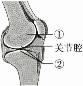 D 解析:关节囊的内表面能分泌滑液,滑液进入关节腔,起着润滑关节软骨的作用,可以减少骨与骨之间的摩擦,使关节的运动灵活自如;运动并不是仅靠运动系统(主要由骨、关节、肌肉组成)来完成的,还需要神经系统的调节,运动的能量供应,有赖于消化系统、呼吸系统、循环系统等系统的配合;题图中①所示的结构是膝关节的关节头;题图中②所示结构是关节软骨,关节软骨磨损会导致关节疼痛。