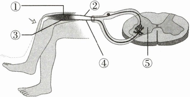 B 解析:题图中的①是感受器、②是传入神经、③是效应器、④是传出神经、⑤是神经中枢。接受刺激,产生神经冲动的是①感受器;若测试者事先提醒受试者,受试者在有意识控制的情况下进行膝跳反射实验,实验结果的成功率会下降,说明大脑皮层中的高级神经中枢能控制脊髓中的低级神经中枢。
