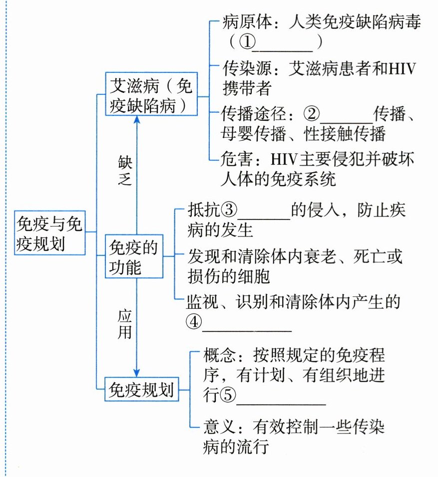 ①HIV ②血液 ③抗原 ④异常细胞 ⑤预防接种