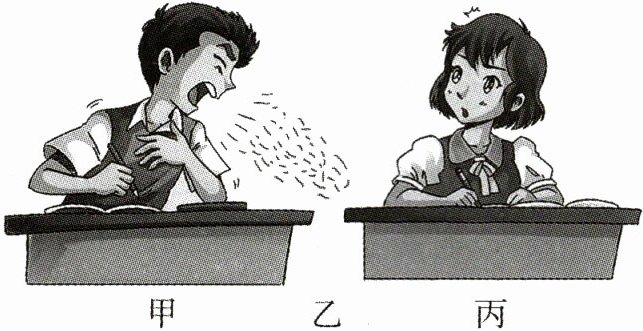 2. 下图中的甲、乙、丙分别表示流感流行基本环节中的(