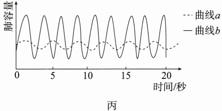 (2)脑干中有些部位专门调节呼吸、心跳等基本生命活动。奔跑时运动员的呼吸急促,与图丙中的曲线b更相符。