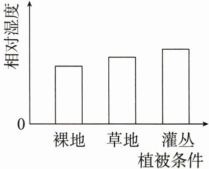 5.在“探究植物对空气湿度的影响”课外实践活动中,某小组用湿度计分别测量裸地、草地和茂密的灌丛中的相对湿度,结果如右上图所示。下列相关叙述错误的是(