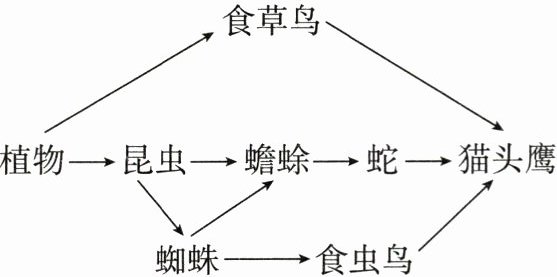 )A.植物→昆虫→蟾蜍→蛇→猫头鹰是该食物网中最长的一条食物链