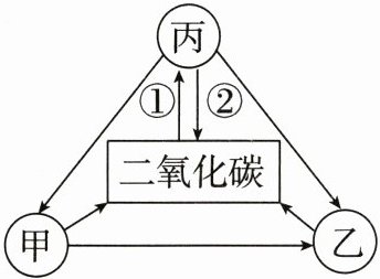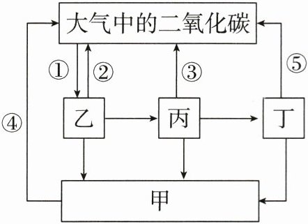 C.乙是生产者,通过②光合作用为生态系统提供有机物和氧气