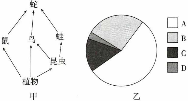 图甲:(食物链:植物→鼠→蛇,植物→鸟→蛇,植物→昆虫→鸟→蛇,植物→昆虫→蛙→蛇)
