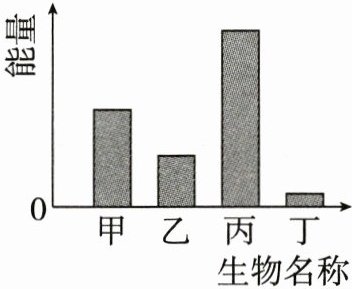 (柱状图,横坐标生物名称:甲、乙、丙、丁,纵坐标能量,丙能量最高,甲次之,乙再次之,丁最低)