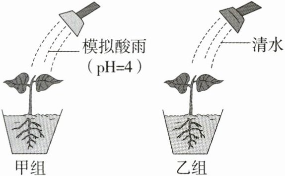 D 解析:本实验探究的是酸雨对植物是否有影响,甲组为实验组,乙组为对照组;若甲组植物死亡,乙组植物正常生长,则可说明酸雨对植物有影响。