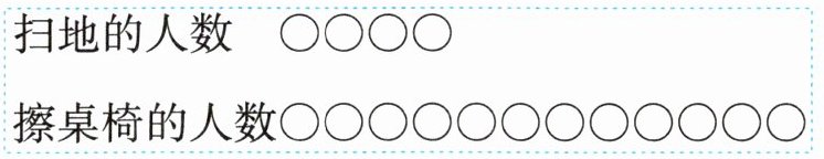 2. 如下图,求“擦桌椅的人数是扫地人数的几倍”,就是“求( )里面有几个( )”。