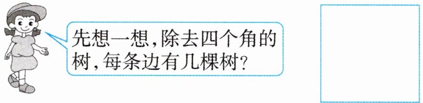 7. 环卫工人在正方形活动场地的四周种了一些杨树,每个角都种了一棵,这样每边都有 12 棵树,一共种了多少棵树?