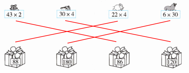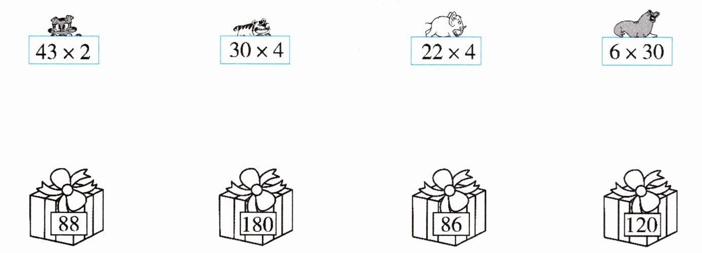 5. 盒子里的礼物分别是哪个小动物的?(连一连)