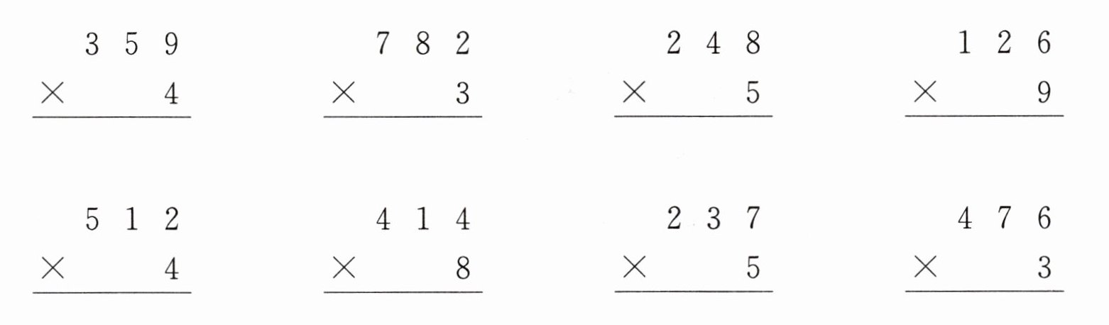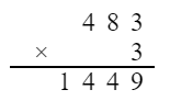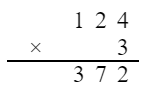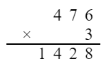 (2) 十位:$4×3 + (\quad) = (\quad)$,向百位进$(\quad)$,在积的十位上写$(\quad)$。
